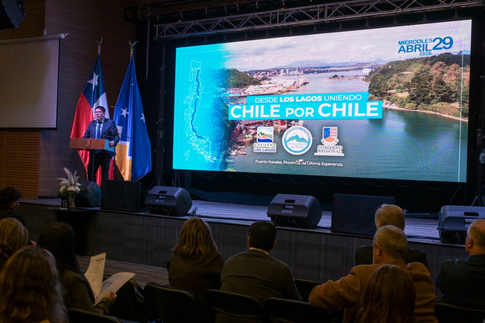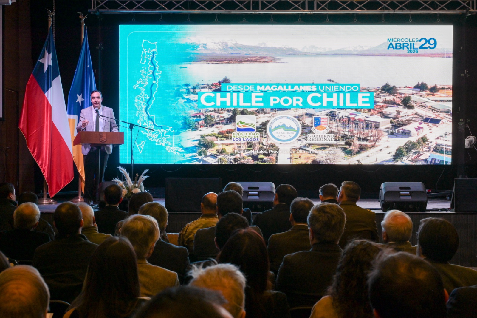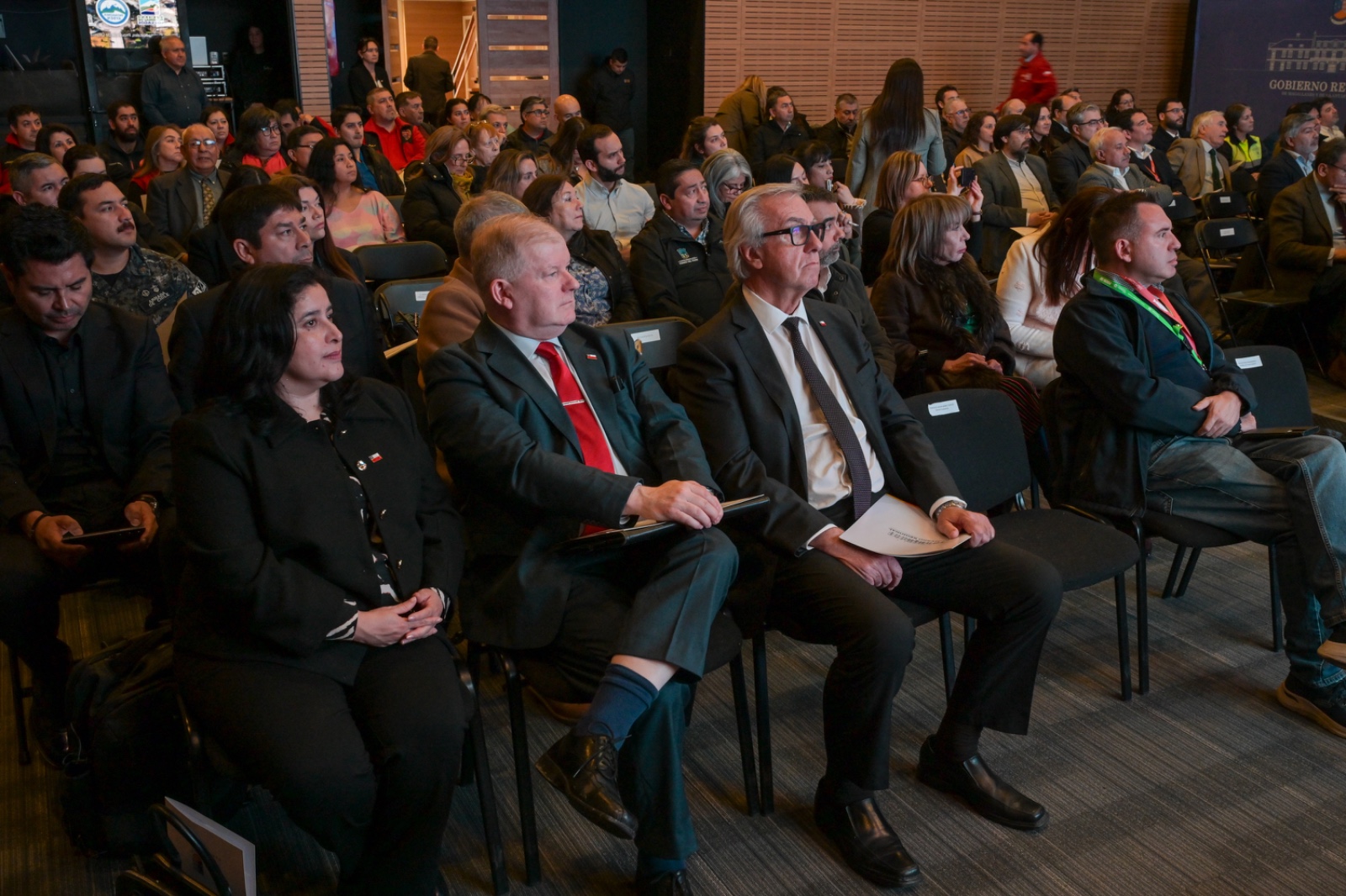 El Gobernador anfitrión, Jorge Flies, estuvo acompañado de su par de Los Lagos, Alejandro Santana; el jefe de la División de Planificación y Desarrollo Regional (Diplader) de Aysén, Omar Muñoz, en representación del Gobernador Marcelo Santana; y el director nacional subrogante de Vialidad, Jaime Huidobro. También estaban las alcaldesas de Natales, Ana Mayorga; de Torres del Paine, Anahí Cárdenas, y alcalde de Punta Arenas, Claudio Radonich; consejeros regionales, concejales, jefes de servicio, representantes de las fuerzas de orden y seguridad, y de la sociedad civil.