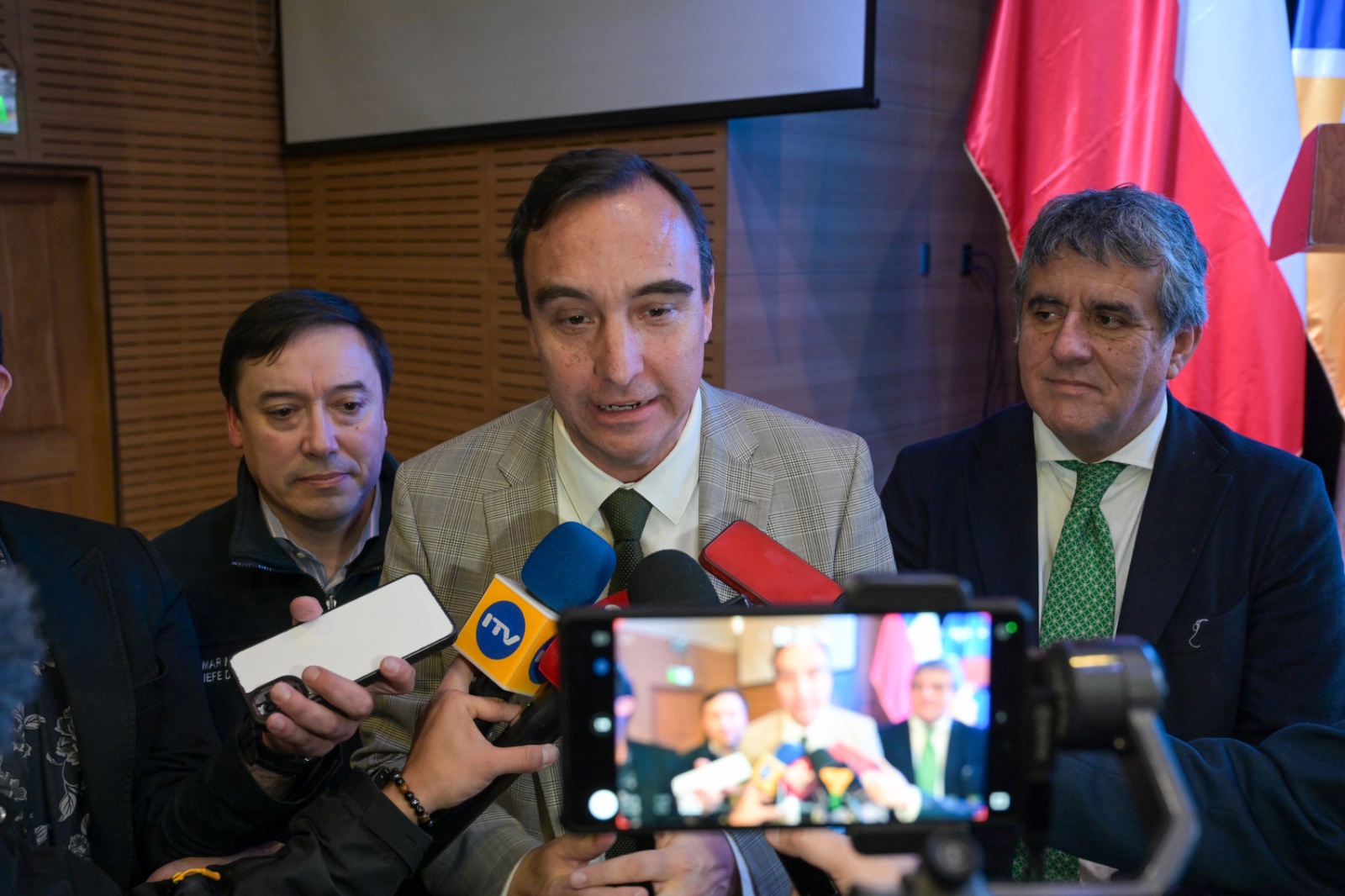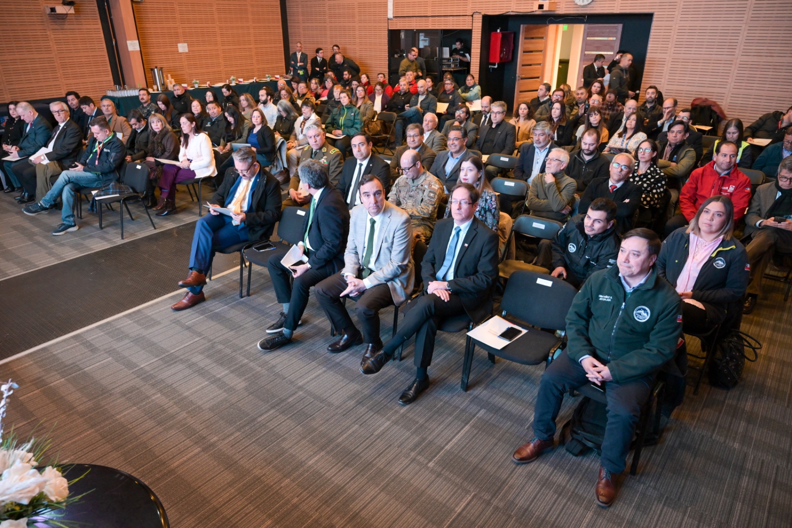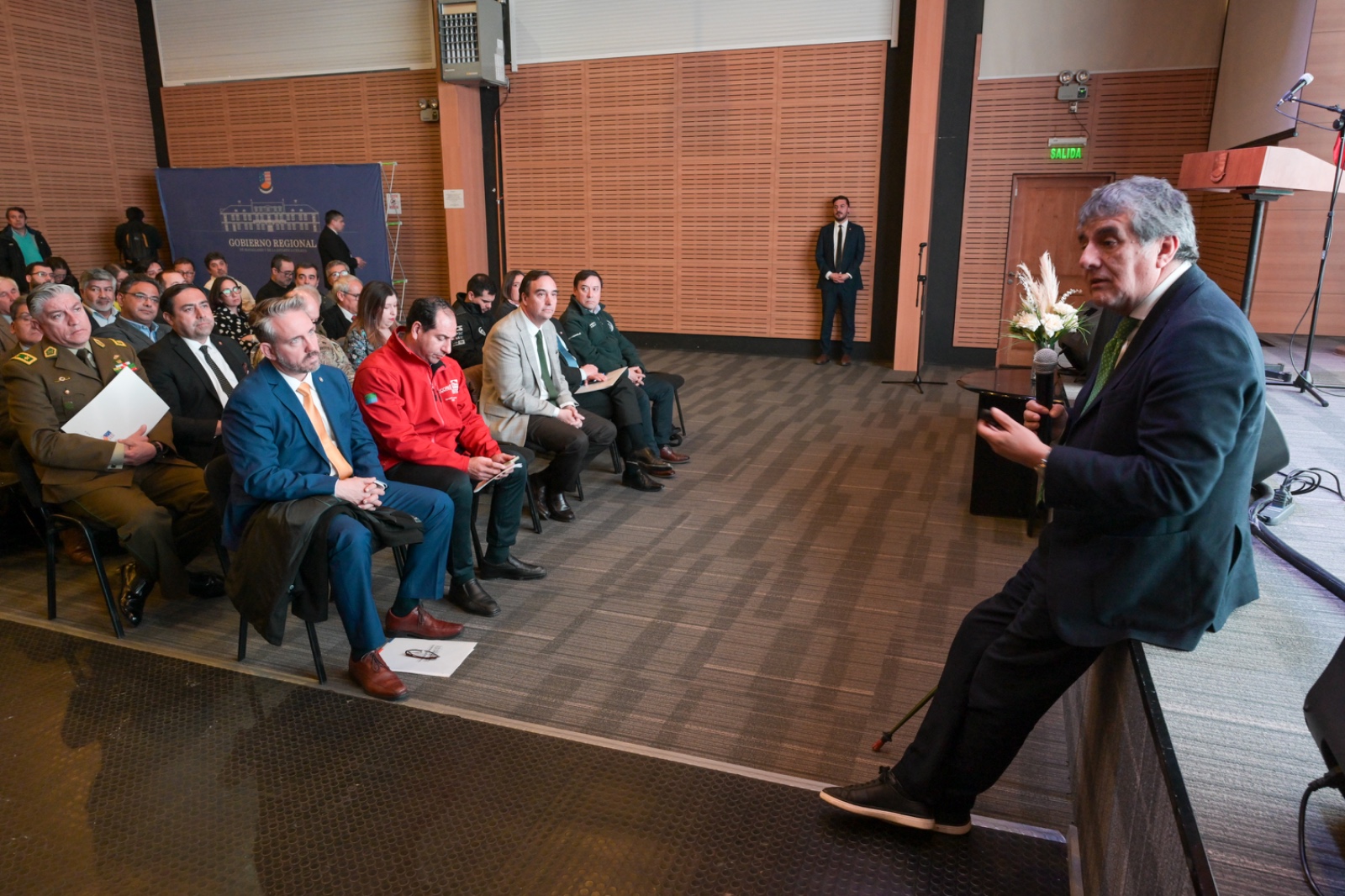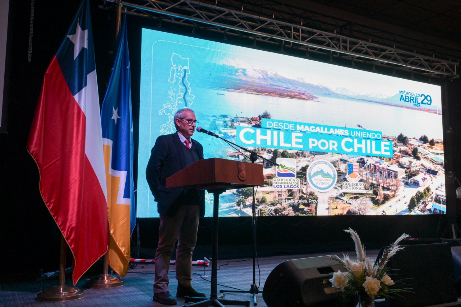 El Gobernador anfitrión, Jorge Flies, estuvo acompañado de su par de Los Lagos, Alejandro Santana; el jefe de la División de Planificación y Desarrollo Regional (Diplader) de Aysén, Omar Muñoz, en representación del Gobernador Marcelo Santana; y el director nacional subrogante de Vialidad, Jaime Huidobro. También estaban las alcaldesas de Natales, Ana Mayorga; de Torres del Paine, Anahí Cárdenas, y alcalde de Punta Arenas, Claudio Radonich; consejeros regionales, concejales, jefes de servicio, representantes de las fuerzas de orden y seguridad, y de la sociedad civil.